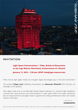 Light Space Conversations Ingo Maurer 17.01.2019 – 19:30 Uhr Light Space Conversations / Talks, Drinks & Discussions at the Ingo Maurer Showroom, Kaiserstrasse 47, München